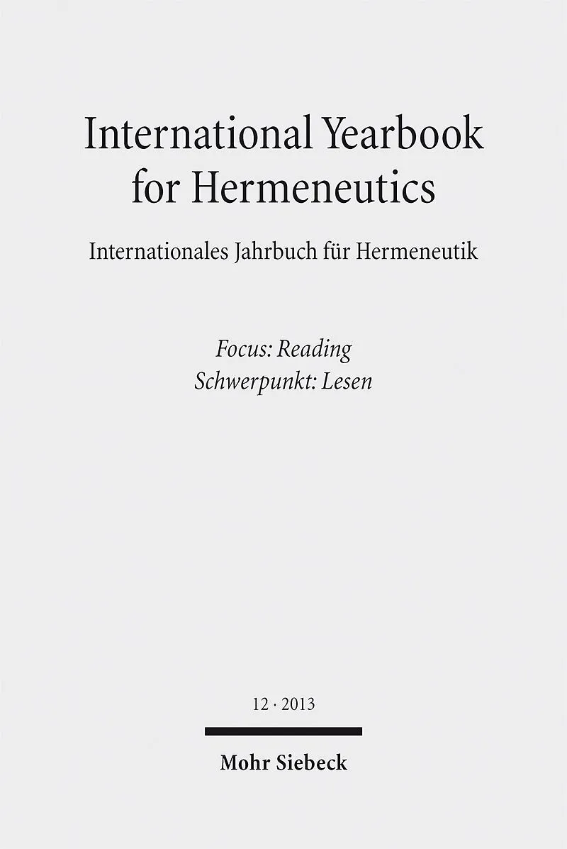 The International Yearbook for Hermeneutics represents one of the prominent currents in contemporary philosophy as well as in bordering disciplines. It collects studies on questions concerning understanding and interpretation in all relevant fields, including ...