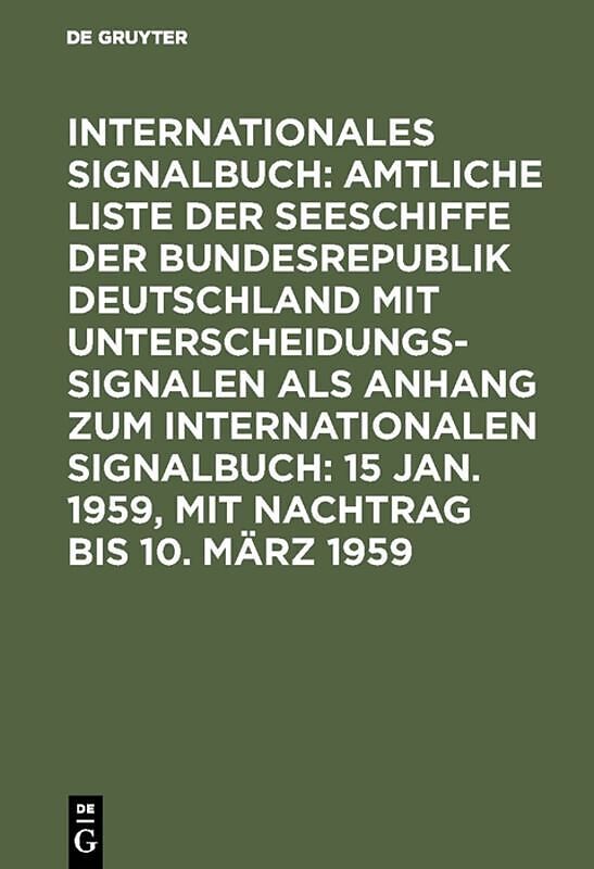 Keine ausführliche Beschreibung für "15 Jan. 1959, mit Nachtrag bis 10. März 1959" verfügbar. Frontmatter -- Vorwort -- Teil I -- A) Die Kauffahrteischiffe Der Bundesrepublik Deutschland -- B) Die Schiffe Der Bundesmarine In Der Reihenfolge Der Unter...