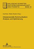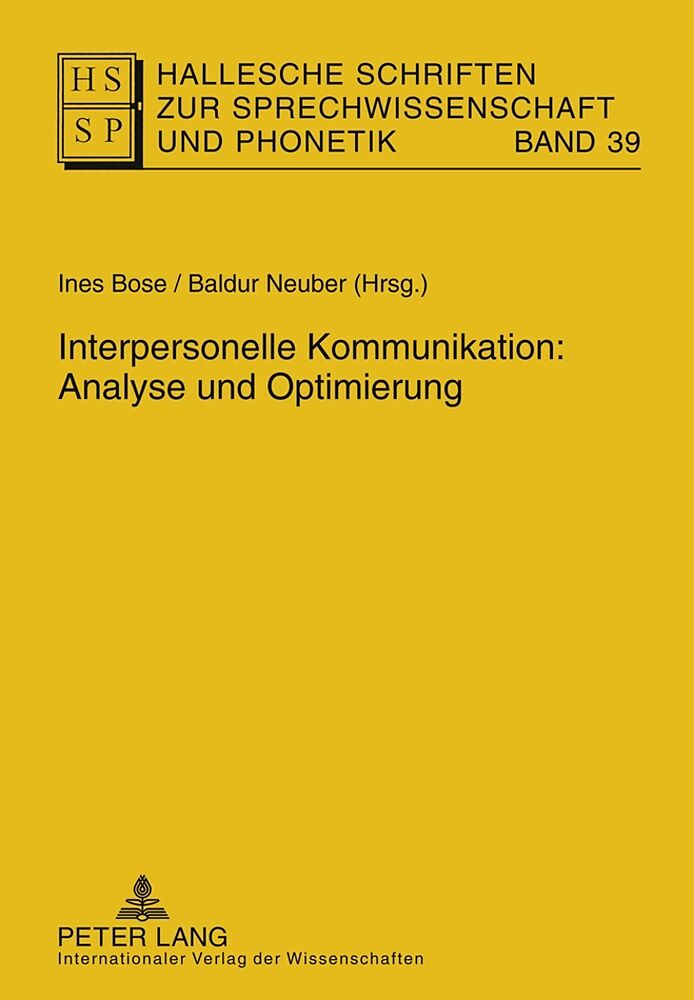 Dieser Sammelband enthält Beiträge der sprechwissenschaftlichen Fachtagung «Interpersonelle Kommunikation Analyse und Optimierung» (7.-10.10.2010 in Halle). Die Beiträge befassen sich mit Forschungsstand, Forschungsfragen und Desiderata der Analyse und Optimie...Dieser Sammelband enthält Beiträge der sprechwissenschaftlichen Fachtagung «Interpersonelle Kommunikation Analyse und Optimierung» (7.-10.10.2010 in Halle). Die Beiträge befassen sich mit Forschungsstand, Forschungsfragen und Desiderata der Analyse und Optimierung interpersoneller Kommunikation in Sprechwissenschaft und Sprecherziehung vorzugsweise mit einem kritischen Blick auf das bisher Erreichte und auf zukünftige Aufgaben in Forschung und Lehre. Die Themenschwerpunkte im Einzelnen: Grundlagen und Didaktik interpersoneller Kommunikation, Sprechkunst und Sprechbildung, Kommunikationsförderung, Kodifikationen und Anwendungsbereiche der deutschen Standardaussprache, interkulturelle Kommunikation und kontrastive Phonetik, Kommunikationsstörungen und Telekommunikation.