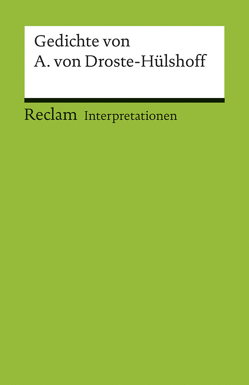 Der Band versammelt Interpretationen der wichtigsten Gedichte von Annette von Droste-Hülshoff durch anerkannte Fachleute: Die Taxuswand, Die Vergeltung, Am Turme, Der Knabe im Moor, Der Weiher, Die Mergelgrube, Die Stadt und der Dom, An Elise, Der Dichter Dic...