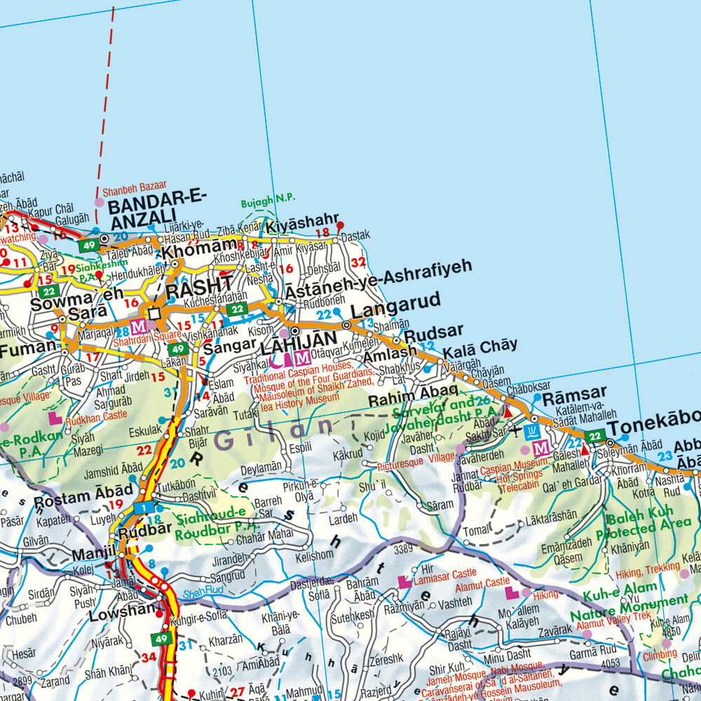 Mit der Straßenkarte Iran im Maßstab 1:1.500.000 finden sich Urlauber die mit Auto oder Motorrad unterwegs sind bestens zurecht. Das weit verzweigte Straßennetz ist exakt abgebildet, Entfernungen und viele Ausflugsziele sind in der Karte eingezeichnet. Informa...