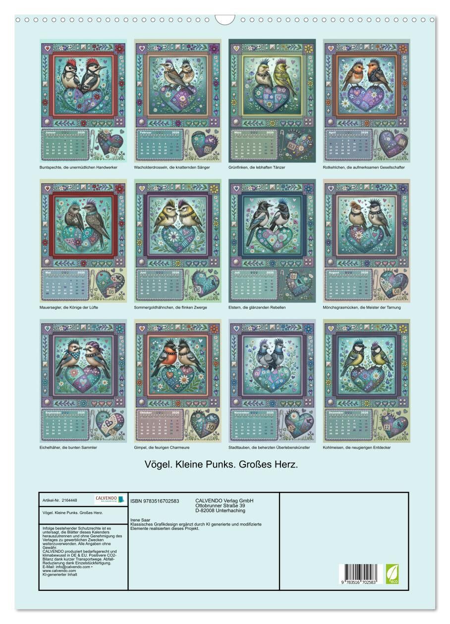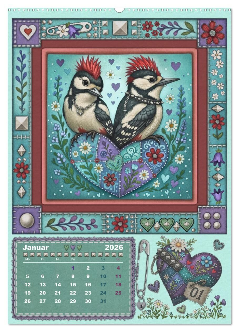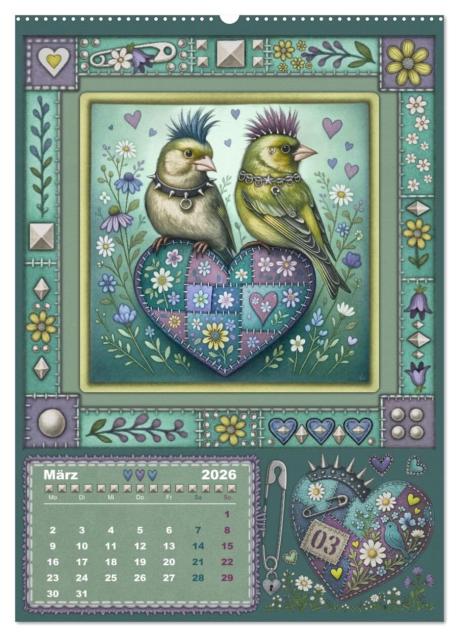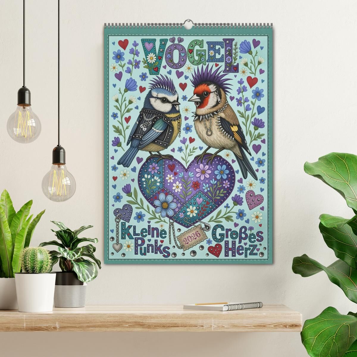 Vögel. Kleine Punks. Großes Herz. (Wandkalender 2026 DIN A2 hoch), CALVENDO Monatskalender
