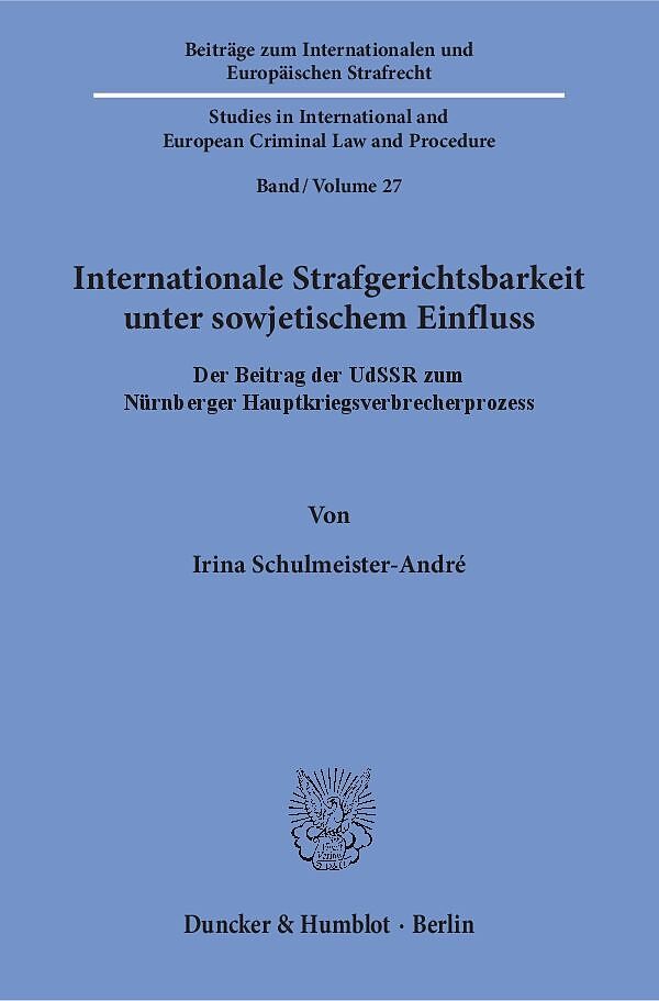 »International Criminal Jurisdiction Under the Soviet Union: the USSR's Contribution to the Nuremberg Trial of Major War Criminals« The study examines the influence of the Soviet Union and its central figures throughout the preparatory and implementation stages of the Nuremberg trial against major war criminals. Based on findings from archival sources, the study analyzes the Soviet contribution to the genesis of the IMT statute, the preparation of the indictment, and the obtaining of evidence. Thereupon, the study focuses on the Soviet role in the trial hearings and, finally, the process of determining the final verdict.