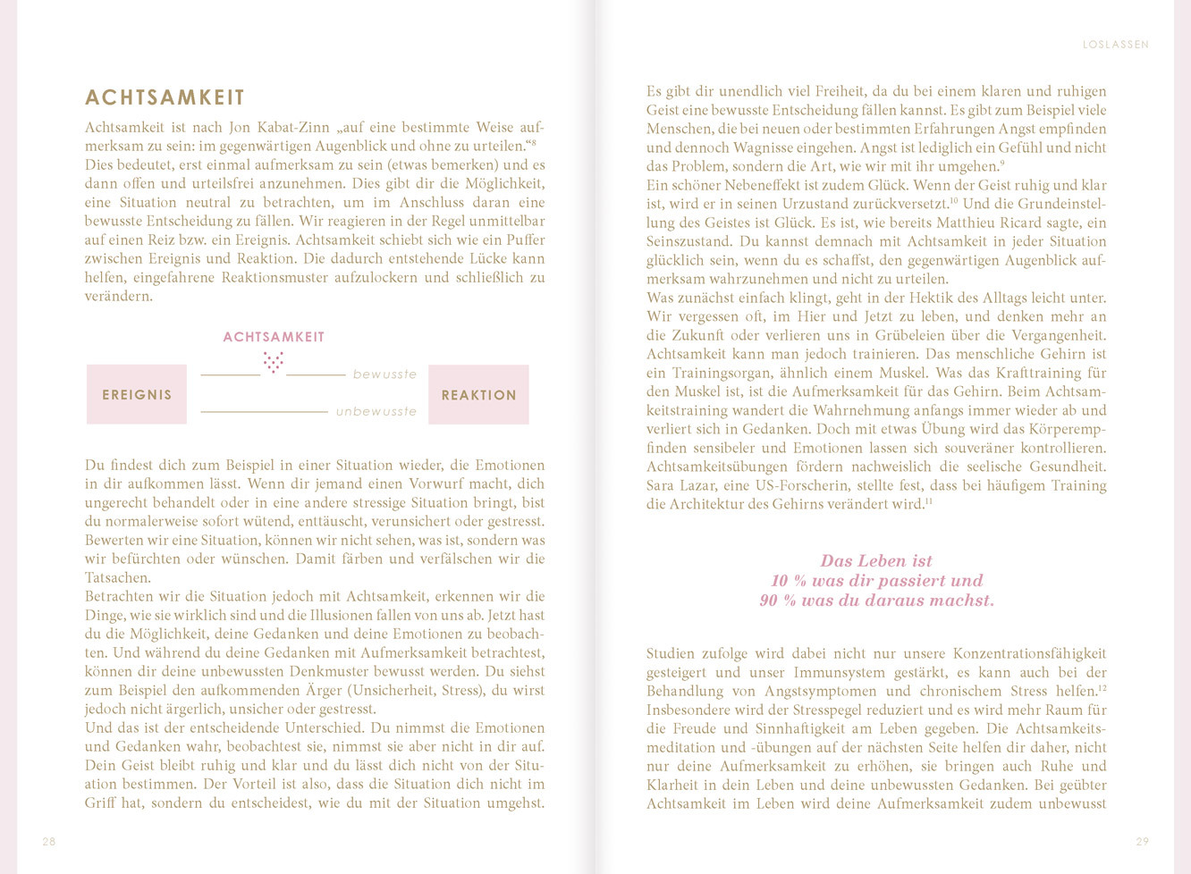 DIE WISSENSCHAFT DES GLÜCKS 12 - KLARHEIT 14 Klarheit über dein Leben 15 Die Vogelperspektive 17 Deine Lebensbereiche 18 - LOSLASSEN 20 Vom Denken übers Tun zum Sein 21 Gewohnheiten verändern 23 Die Kraft der Gedanken 26 Das Gedankenkarussell stoppen 27 Achtsamkeit 28 Meditation 31 - MOTIVATION 32 Langfristig motiviert bleiben 33 Erfolgserlebnisse sichtbar machen 34 Optimismus ist erlernbar 35 Vom Negativen zum Positiven 36 Mit Dankbarkeit dem Leben vertrauen 38 Glücklich & motiviert im Alltag 39 - FOKUS 40 Ziele richtig formulieren 41 Visualisieren 42 5 goldene Regeln 44 Ziele im Alltag umsetzen 45 Mit Dankbarkeit dem Leben vertrauen 38 Glücklich & motiviert im Alltag 39