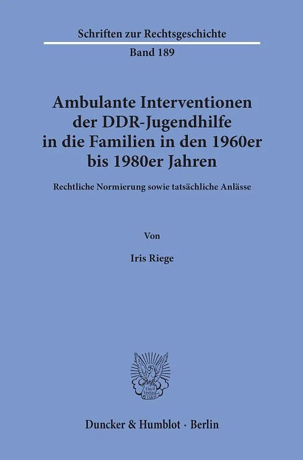 Mit der vorliegenden Arbeit soll ein Beitrag zu einer Darstellung der DDR-Jugendhilfe und damit exemplarisch des öffentlichen Rechts der DDR geleistet werden. Sie ergründet, wie die rechtliche Normierung von ambulanten Interventionen der DDR-Jugendhilfe in die...