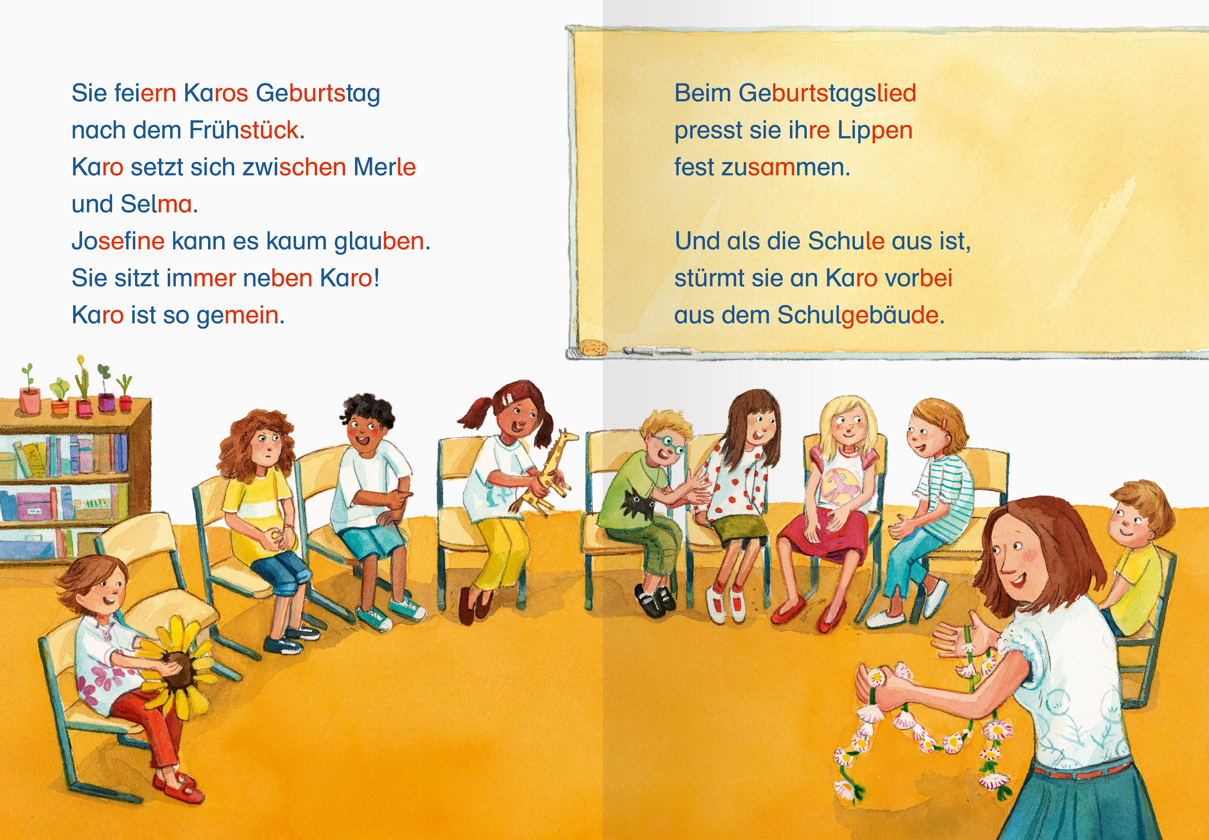 Karo hat Geburtstag. Ausgerechnet heute streitet sie sich mit ihrer besten Freundin Josefine. Es gibt eine wilde Räuberjagd im Garten. Doch Josefine und Karo haben sich immer noch nicht wieder vertragen. Als Josefine hinfällt, kommt Karo ihr zu Hilfe. Josefine...
