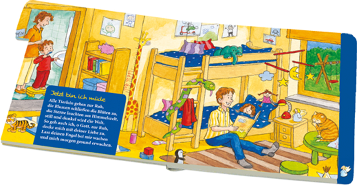 Hier wimmelt es ... - Farbenfrohe Wimmel-Illustrationen von Manfred Tophoven - Froh machende Gebete für die Kleinsten - Mit Griffregister zum spielerischen Entdecken kleiner Details im Bild Bunte Kindergebete durch den Tag und farbenfrohe Bilder, auf denen es ...