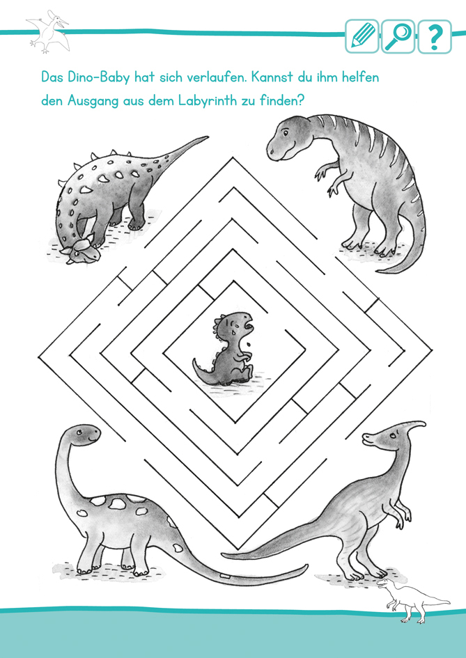Bei den Dinos herrscht ein großes Durcheinander! Welches Ei gehört zu welchem Dino? Wie findet die Mama zu ihrem Dino-Baby? Und essen Dinosaurier wirklich Eis? Wege durchs Labyrinth finden, Puzzeln, Zuordnen, Vergleichen ein kunterbunter Rätsel-Mix mit Lösungs...