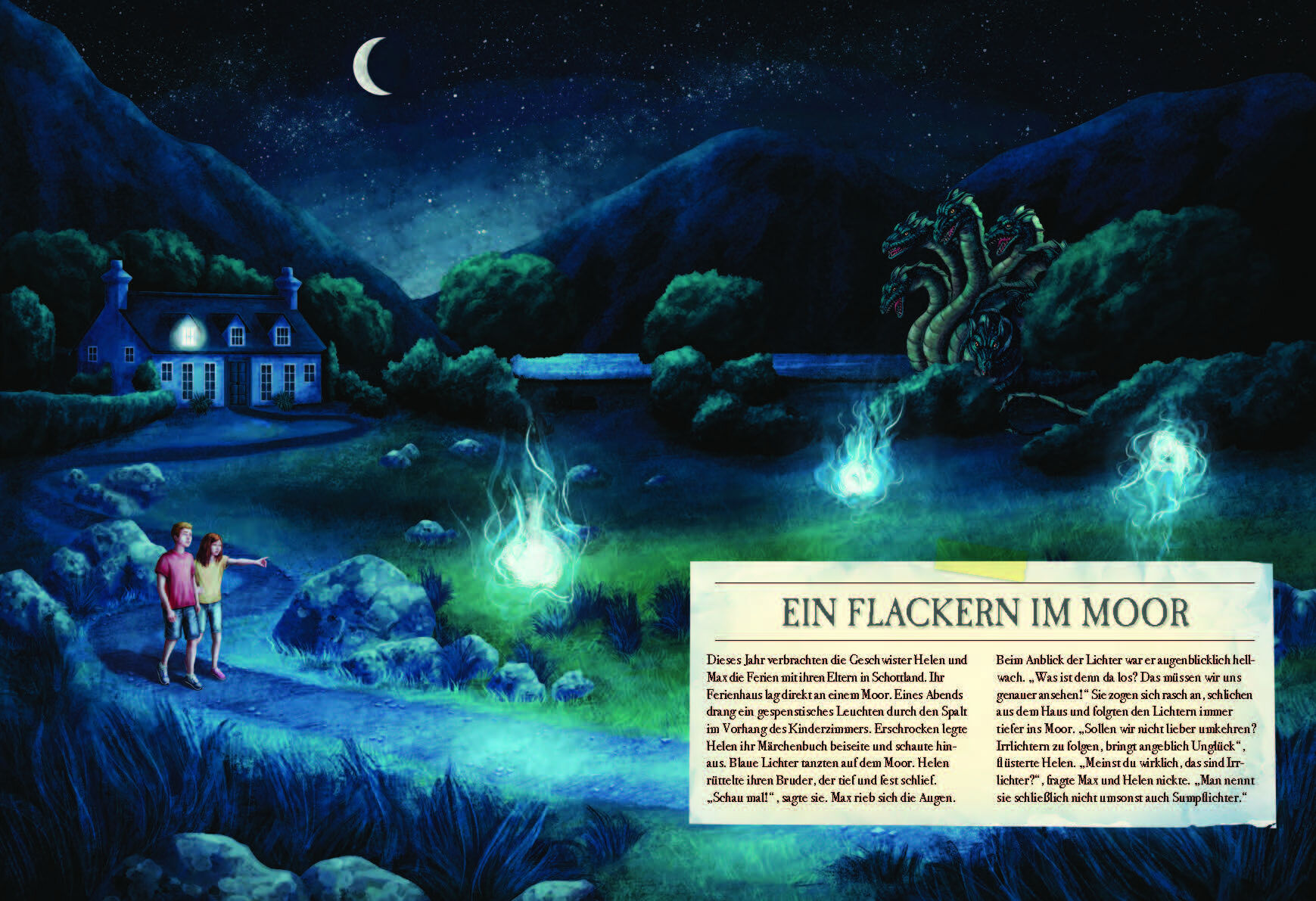 Vom Zimmer ihres schottischen Ferienhauses aus entdecken die Geschwister Max und Helen geheimnisvolle Lichter in der Dunkelheit. Von Neugier getrieben folgen sie ihnen bis ins Moor, und die Irrlichter führen die beiden Kinder in eine Welt voller Magie. Während...