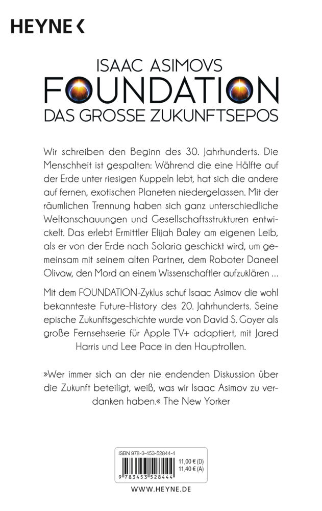Mordermittlungen auf einer fremden Welt Zu Beginn des 30. Jahrhunderts ist die Menschheit gespalten: Die einen leben auf der Erde, zusammengepfercht unter riesigen Kuppeln, die anderen die sogenannten Spacer haben sich auf fremden Planeten niedergelassen. Doch...