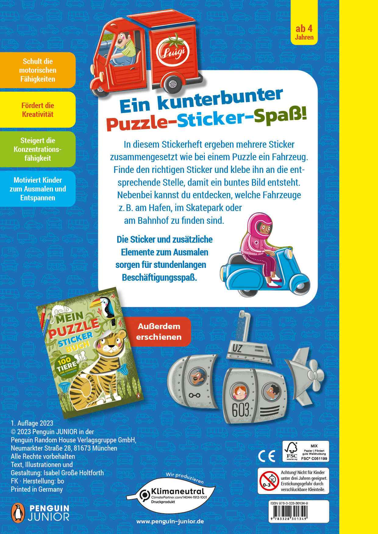 Fahrzeuge stickern, das macht Spaß! In diesem Stickerheft ergeben mehrere Sticker zusammengesetzt wie bei einem Puzzle ein Fahrzeug. Finde den richtigen Sticker und klebe ihn an die entsprechende Stelle, damit ein buntes Bild entsteht. Nebenbei kannst du entde...