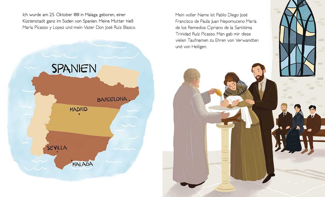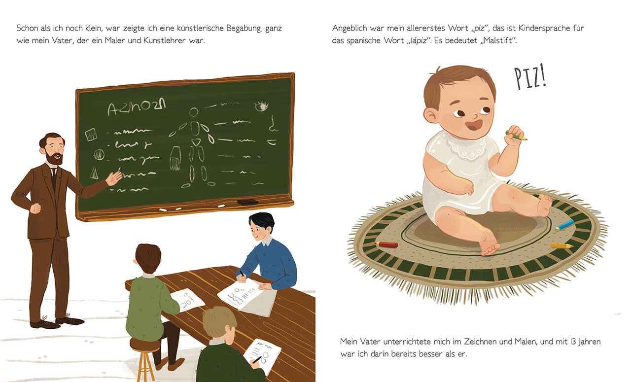 Pablo Picasso liebte klare Formen und starke Farben. Schon mit 16 Jahren stellte er seine Bilder in Madrid aus, erlebte als Künstler blaue und rosa Perioden und eine lange Karriere. Er schuf über 50.000 Kunstwerke, Skulpturen aus Stein und Bronze und töpferte....