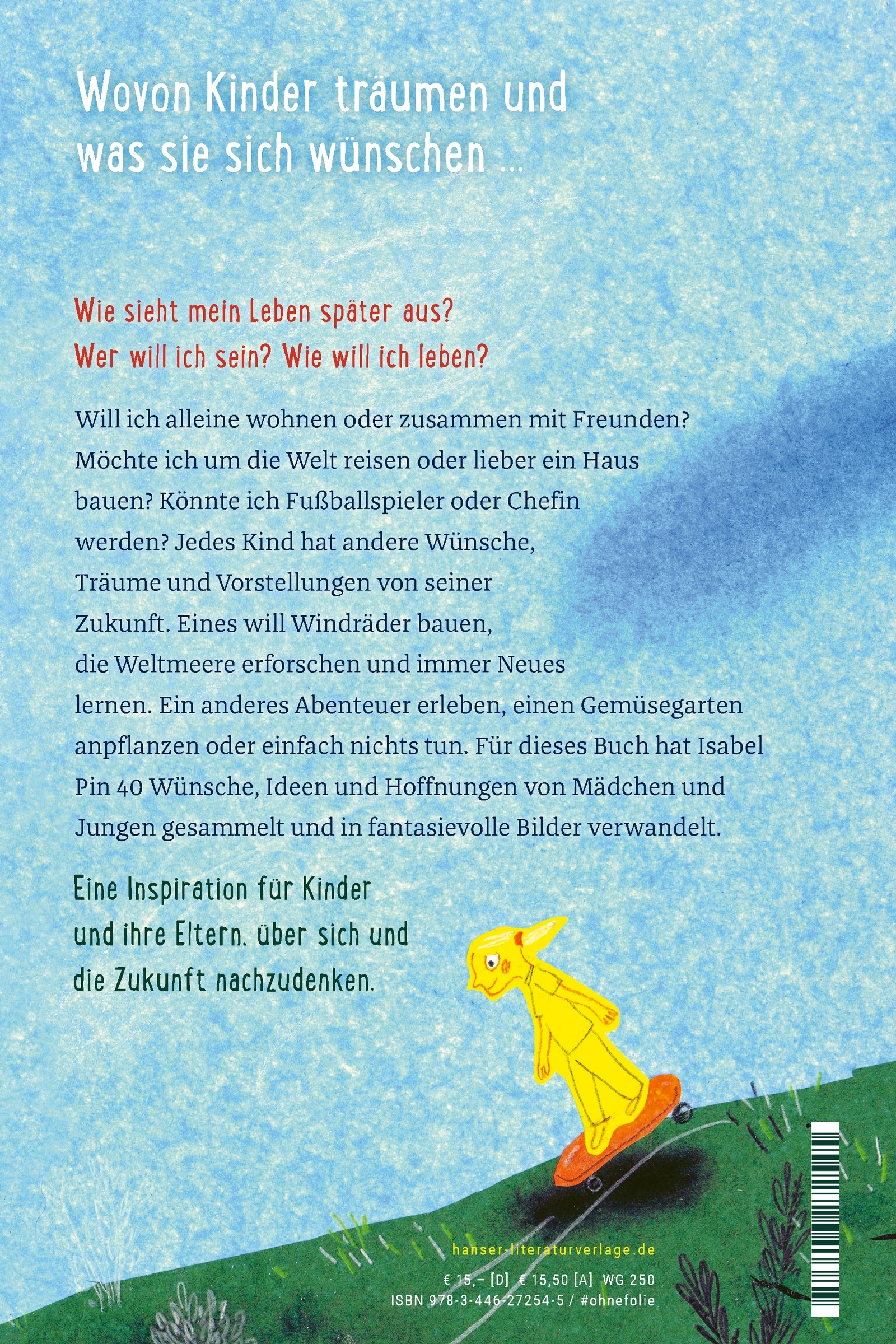 Was will ich? Was werde ich? 40 Kinderwünsche, illustriert von Isabel Pin, die Lust auf die Zukunft machen und Kinder und Eltern ins Gespräch bringen. Wie sieht mein Leben später aus? Wer will ich sein? Will ich alleine wohnen oder zusammen mit Freunden? Möcht...