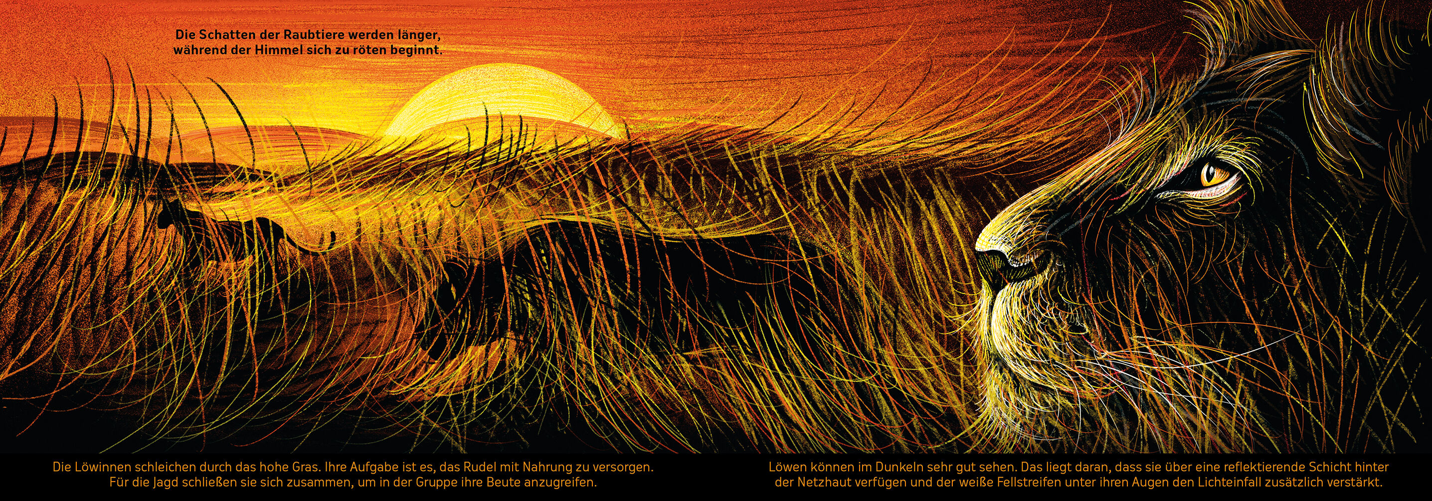 Ein Sachbuch über die Tiere Afrikas, das uns die Einzigartigkeit dieses Lebensraumes vor Augen führt. Die Sonne geht unter, aber die Savanne schläft nicht. Dieses einzigartig illustrierte Sachbuch entführt uns in die fantastische Tierwelt Afrikas: Über die Da...