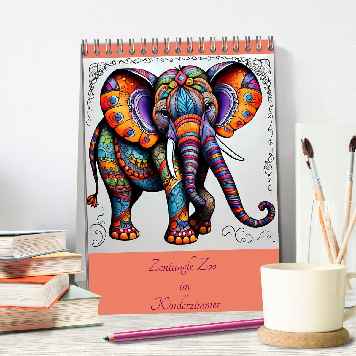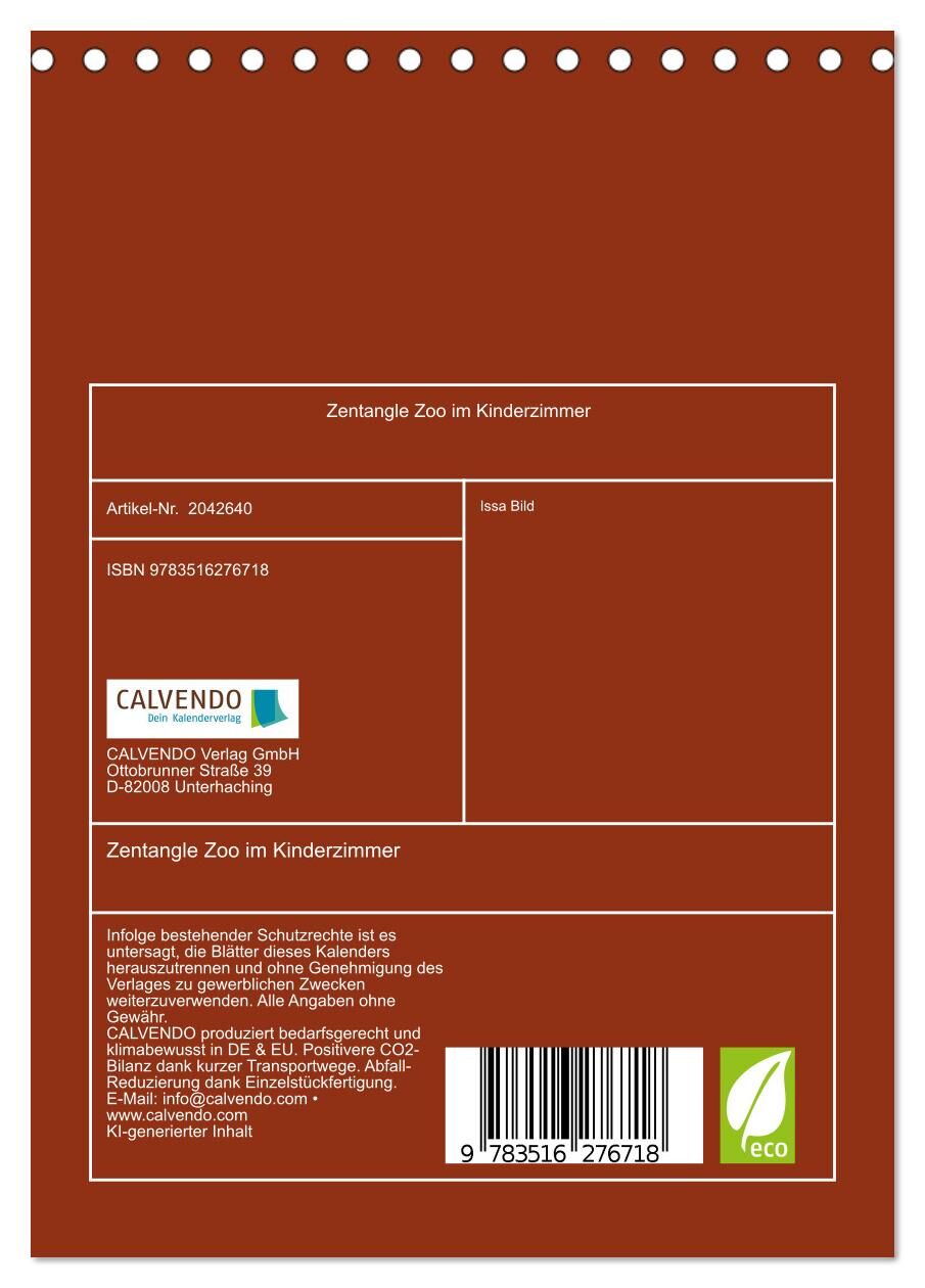 Zentangle Zoo im Kinderzimmer (Tischkalender 2026 DIN A5 hoch), CALVENDO Monatskalender
