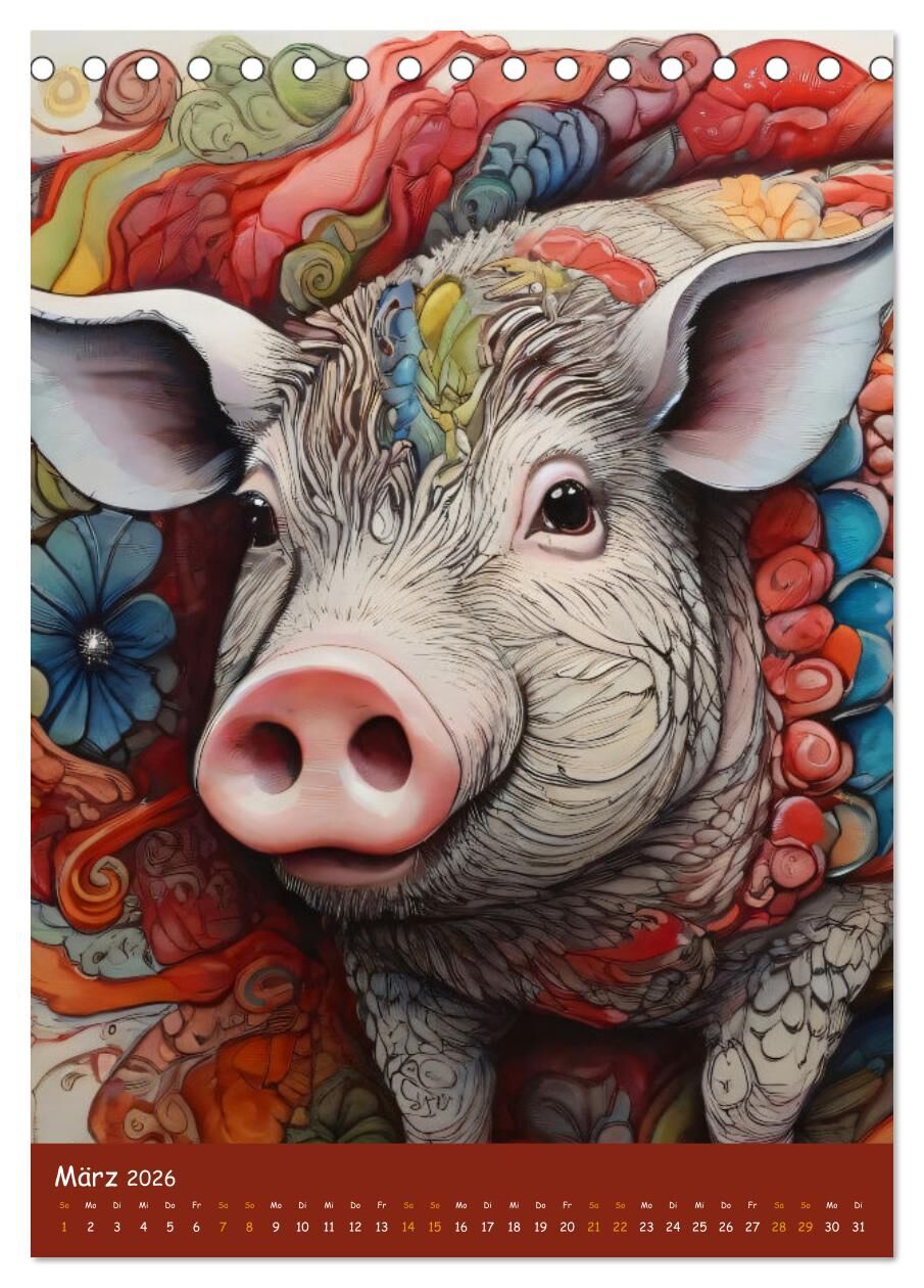 Entdecke eine fantasievolle Tierwelt mit diesem farbenfrohen Kalender für Kinder, gestaltet von einer KI. Haustiere und Wildtiere sind kunstvoll im Zentangle-Stil dargestellt, einer meditativen Kunstform mit sich wiederholenden Mustern zur Förderung von Kreati...