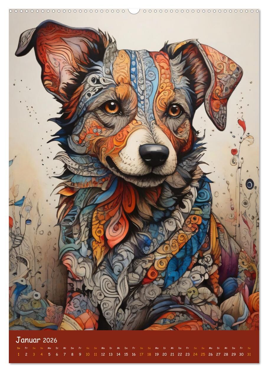 Entdecke eine fantasievolle Tierwelt mit diesem farbenfrohen Kalender für Kinder, gestaltet von einer KI. Haustiere und Wildtiere sind kunstvoll im Zentangle-Stil dargestellt, einer meditativen Kunstform mit sich wiederholenden Mustern zur Förderung von Kreati...