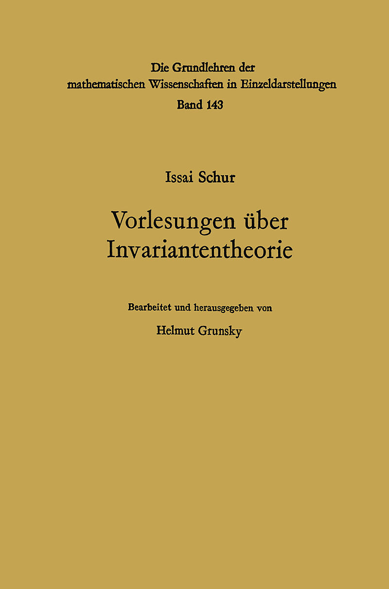 Wer seinerzeit das Gliick hatte, die Vorlesungen von IssAr SCHUR zu hOren, dem sind sie als etwas vom SchOnsten und Wertvollsten seiner wissenschaftlichen Ausbildung in Erinnerung; das kommt immer wieder in Gesprachen zwischen seinen ehemaligen Horem zum Ausdr...