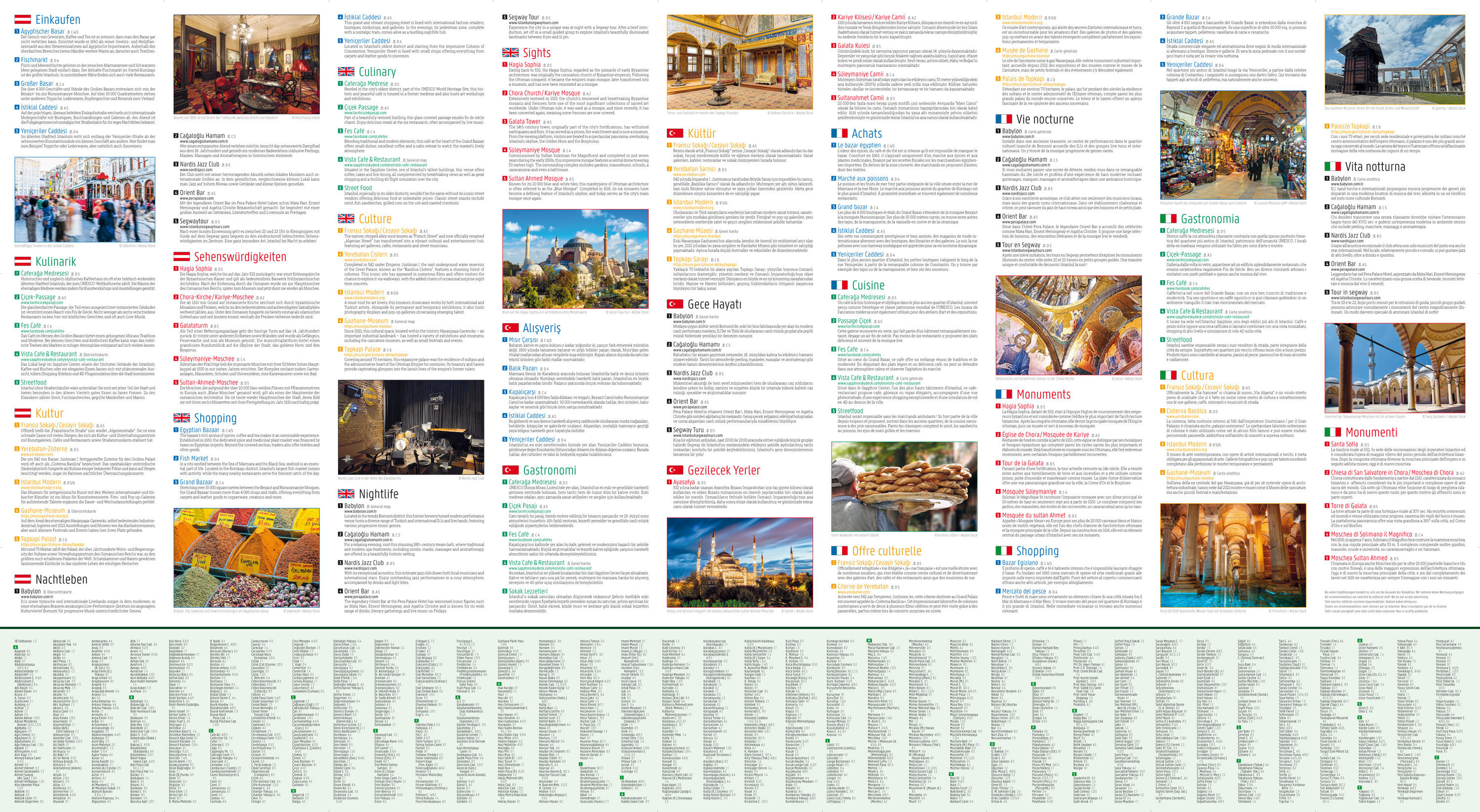Der City Pocket Stadtplan Istanbul 1:10.000 zeigt die Innenstadt von Istanbul und bietet auf der Rückseite zahlreiche Zusatzinformationen und unsere Top Empfehlungen zu den Themen: Einkaufen, Kulinarik, Kultur, Nachtleben und Sehenswürdigkeiten. Durch das hand...