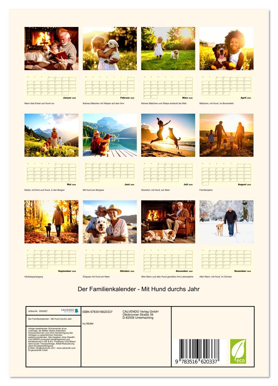 Suchen Sie nach einer besonderen Geschenkidee? Unser Jahreskalender mit Hund als treuem Familienbegleiter ist das perfekte Präsent für Tierliebhaber und Familien! Mit liebevollen Ki generierten Bildern zeigt er die einzigartige Verbindung zwischen Mensch und H...
