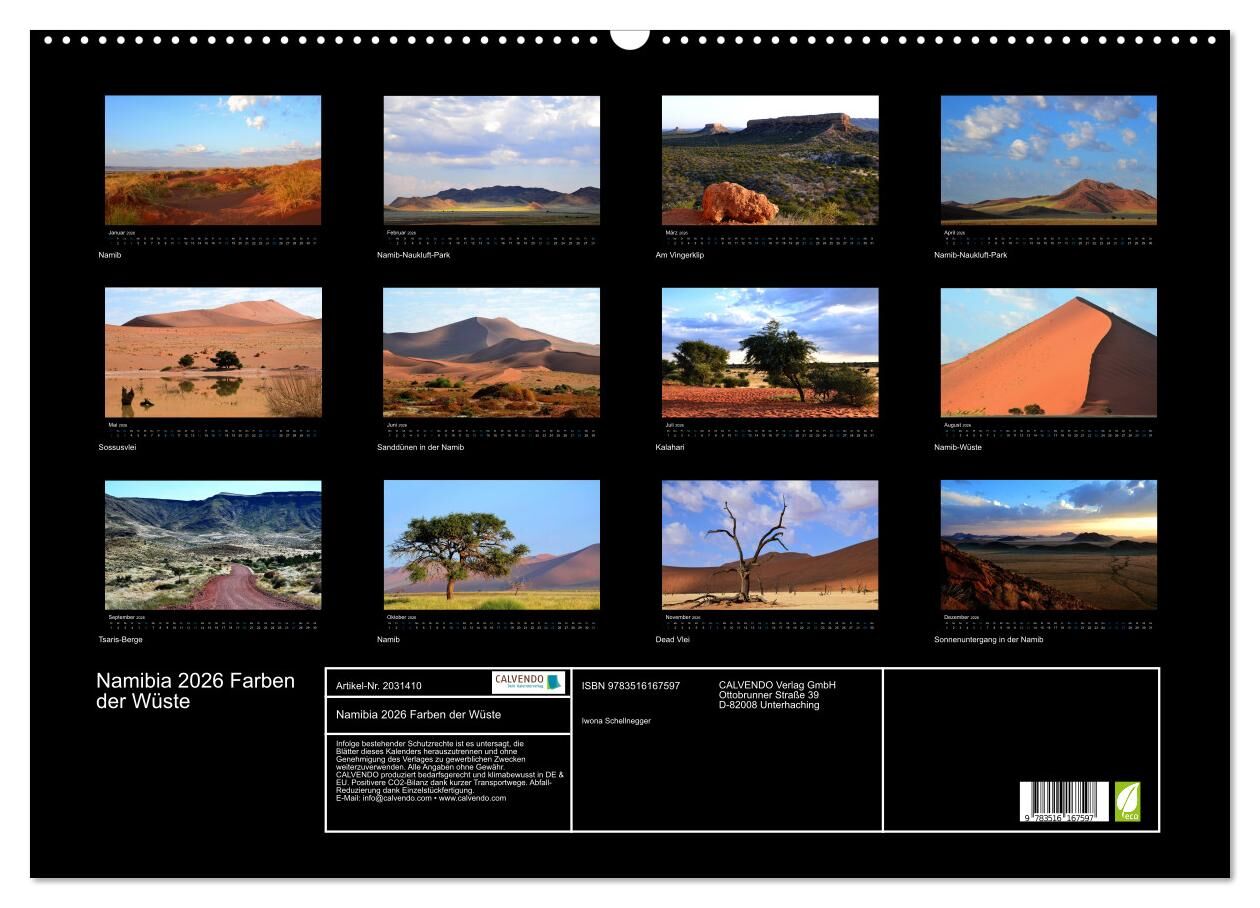 Namibia 2026 Farben der Wüste (Wandkalender 2026 DIN A2 quer), CALVENDO Monatskalender