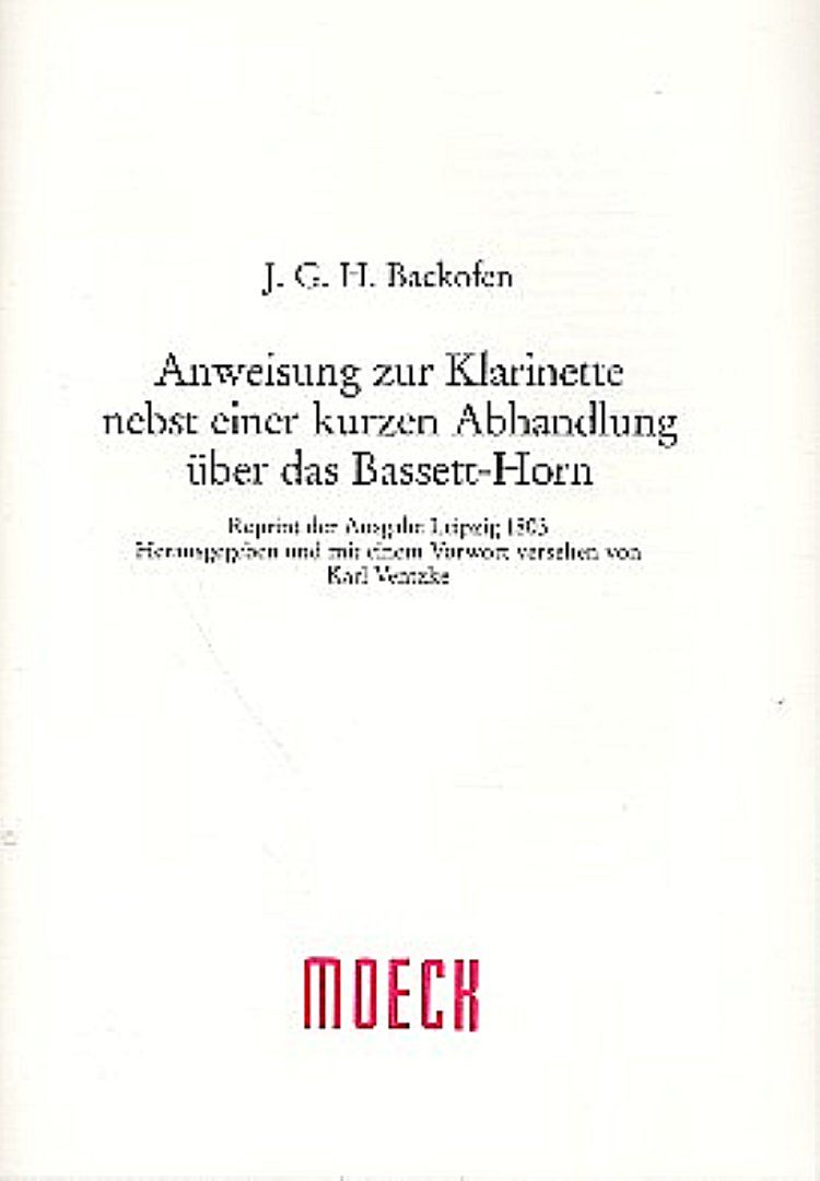 Die Anweisung zur Klarinette ist 1803 erschienen, wohl zu der Zeit, als Backofen in Gotha lebte. Sie ist auf ein fünfklappiges Instrument bezogen und nicht nur die erste deutsche Klarinetten-Schule des 19. Jahrhunderts und für ein Instrument dieser Ausstattung...