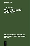 Keine ausführliche Beschreibung für "Vier kritische Gedichte" verfügbar. Inhalt Frontmatter -- Einleitung -- Inhalt -- I. Character Der Teutschen Gedichte -- II. Die Drollingerische Muse -- III. Untergang der berühmten Namen -- IV. Bodmer nicht verka...
