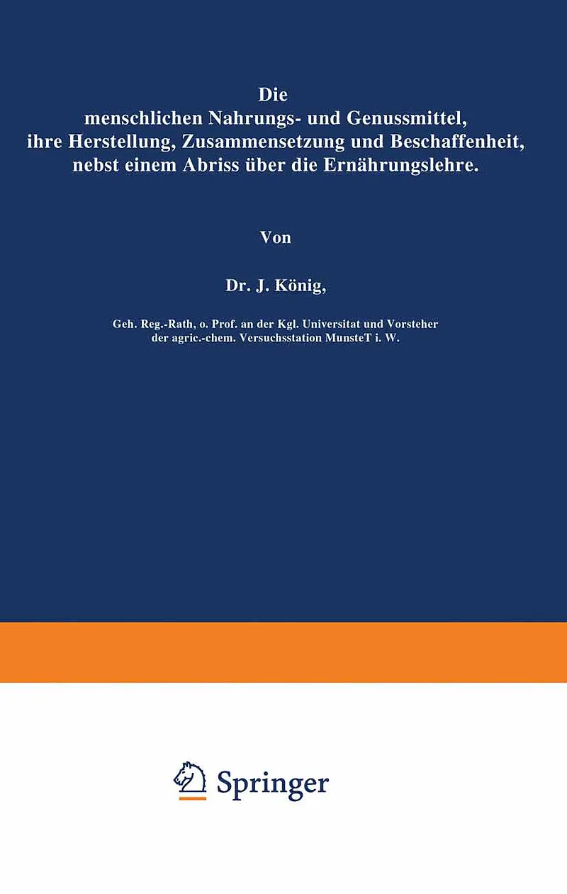 I. Die Bedeutung der Nahrungsmittelchemie. Die Chemie der menschlichen Nahrungs- und Genussmittel ist erst gegen Ende des vorigen Jahrhunderts eiu besonderer Zweig der allgemeinen Chemie geworden und als ein suderen Wissenschaftszweigen gleichberechtigter Lehr...