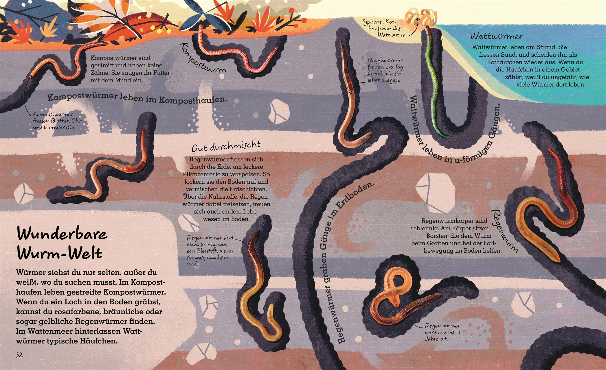 Das Leben unter der Erde entdecken Was verbirgt sich in der geheimnisvollen Welt unter der Erdoberfläche ? Mit diesem Kinderbuch reisen Kinder ab 6 Jahren in die Tiefen unterirdischer Gänge & Höhlen. Von Maulwurf & Regenwurm bis zu gigantischen Pilzne...