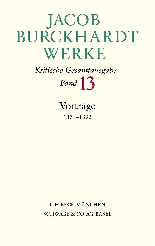 Jacob Burckhardts Vorliebe, durch das unmittelbare, lebendige Wort zu wirken, verdanken wir einen reichen Nachlaß an Vortragsmanuskripten. Deren Bandbreite reicht von literarischen über geschichtliche bis zu kunstgeschichtlichen Themen: von Homer über Thomas ...