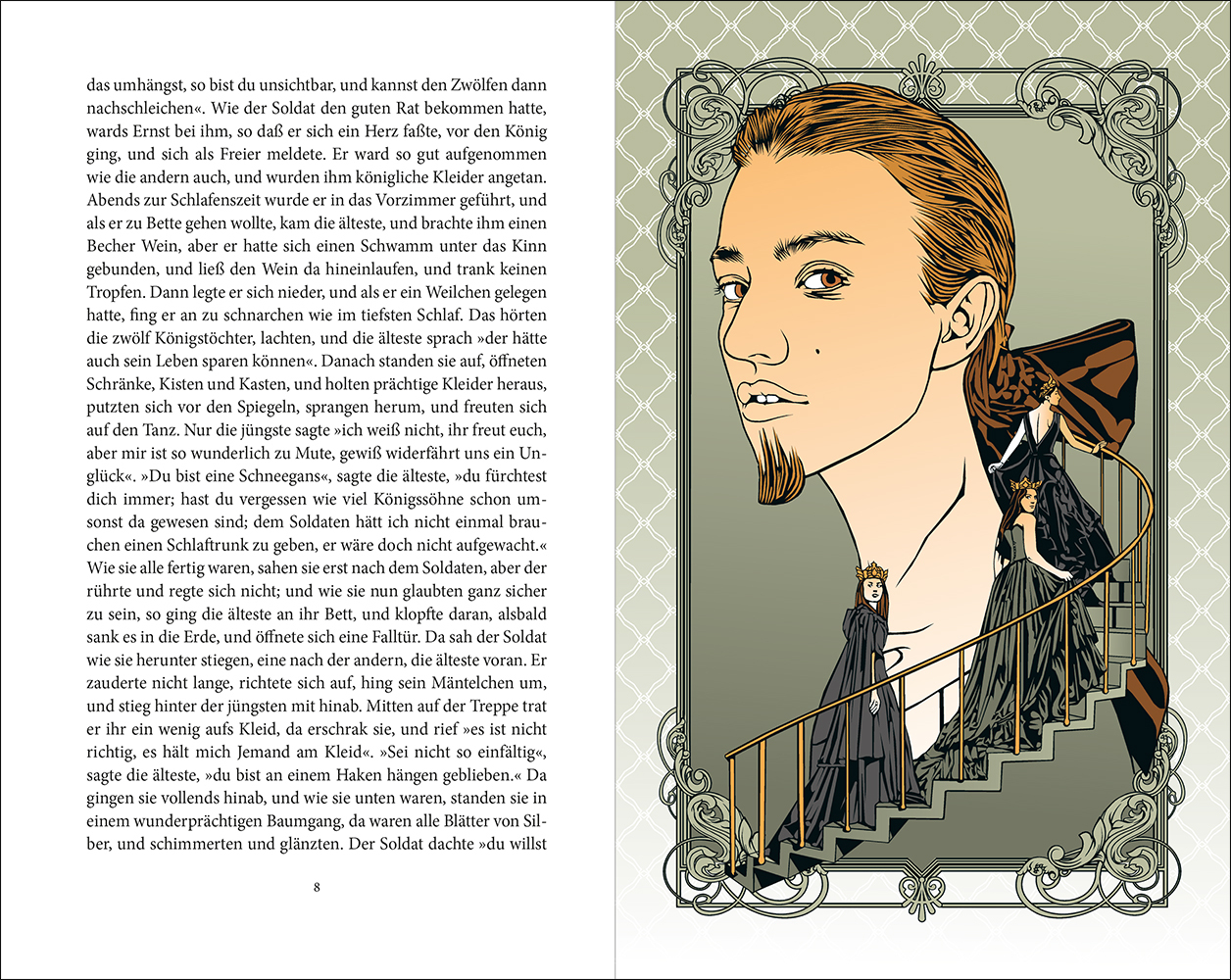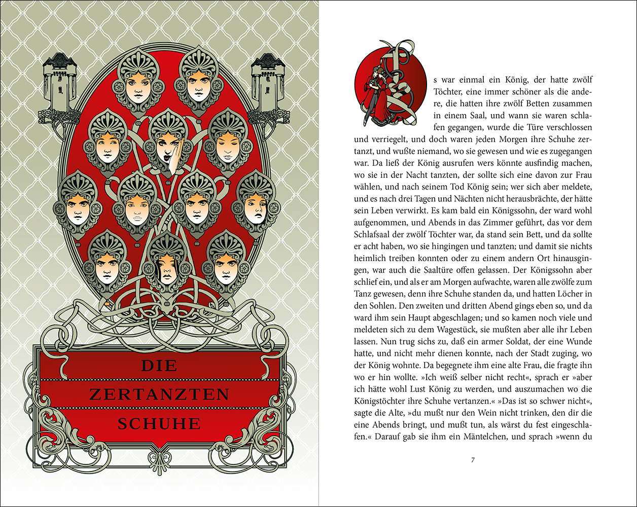 »Es war einmal ein König, der hatte zwölf Töchter, eine immer schöner als die andere, die hatten ihre zwölf Betten zusammen in einem Saal, und wann sie waren schlafen gegangen, wurde die Tür verschlossen und verriegelt, und doch waren jeden Morgen ihre Schuhe...