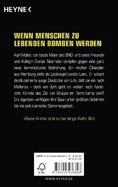 Karl Müller, der beste Mann des BND, und seine Freundin und Kollegin Svenja Takamoto kämpfen gegen eine ganz neue terroristische Bedrohung: Ein reicher Ölhändler aus Hamburg zieht als Lockvogel durchs Land. Er schart desillusionierte junge Deutsche um sich, lä...