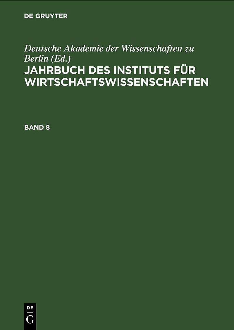 Jahrbuch des Instituts für Wirtschaftswissenschaften / Jahrbuch des Instituts für Wirtschaftswissenschaften. Band 8