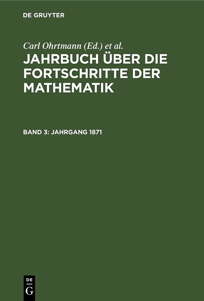Keine ausführliche Beschreibung für "Jahrgang 1871" verfügbar. Frontmatter -- Erklärung der Citate -- Inhaltsverzeichniss -- Verzeichniss -- Berichtigungen -- Erster Abschnitt. Geschichte lind Philosophie -- Zweiter Abschnitt. Algebra -- Dritter Absc...