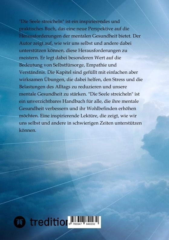 "Die Seele streicheln" ist ein inspirierendes und praktisches Buch, das eine neue Perspektive auf die Herausforderungen der mentalen Gesundheit bietet. Der Autor zeigt auf, wie wir uns selbst und andere dabei unterstützen können, diese Herausforderungen zu mei...
