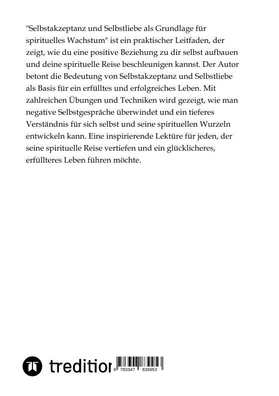 "Selbstakzeptanz und Selbstliebe als Grundlage für spirituelles Wachstum" ist ein praktischer Leitfaden, der zeigt, wie du eine positive Beziehung zu dir selbst aufbauen und deine spirituelle Reise beschleunigen kannst. Der Autor betont die Bedeutung von Selbs...