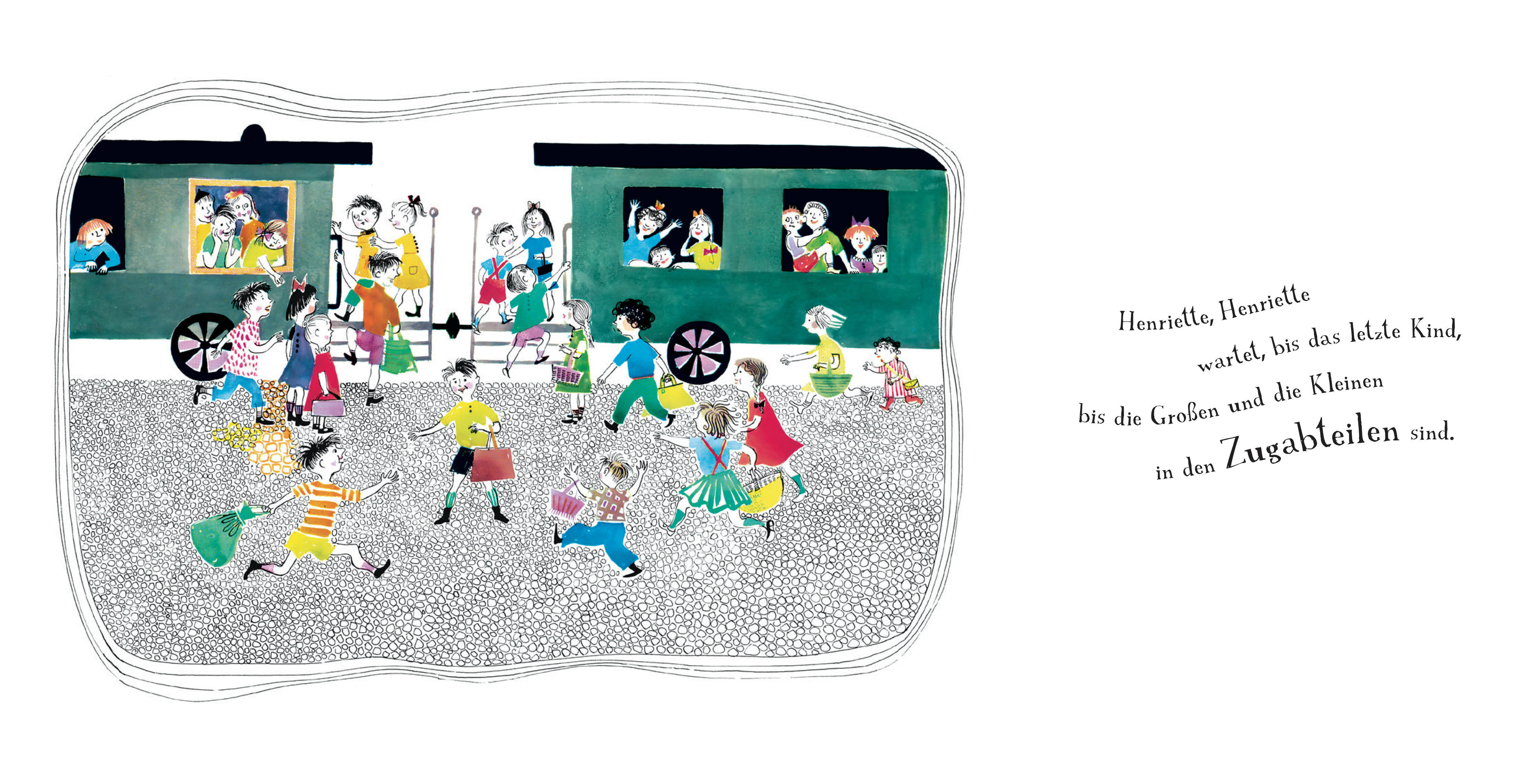 Henriette heißt die nette, alte, kleine Bimmelbahn. Henriette, Henriette fuhr noch nie nach einem Plan. So beginnt der musikalisch und heiter klingende Text von James Krüss. Die Kinder mögen ihn und können ihn schnell mitsprechen. Und auch über die liebevolle...