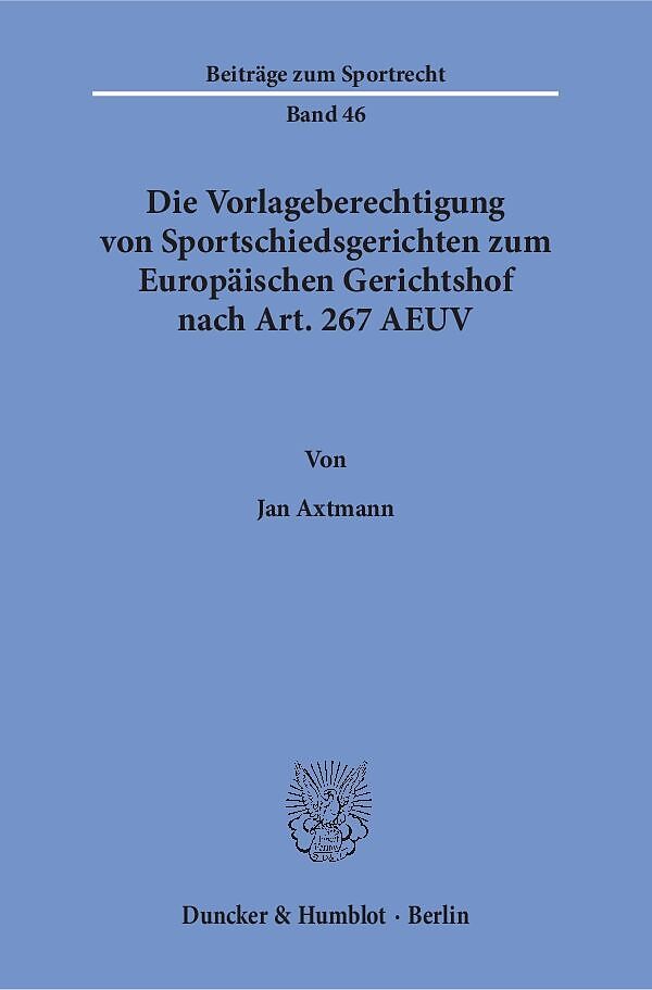 Der Abschluss einer Schiedsvereinbarung ist in den meisten Fällen Voraussetzung für die Teilnahme am sportlichen Wettkampf, ob diese nun in einer Satzung oder in einem zusätzlichen Vertrag enthalten ist. Daher werden Streitigkeiten im Sport grundsätzlich von S...