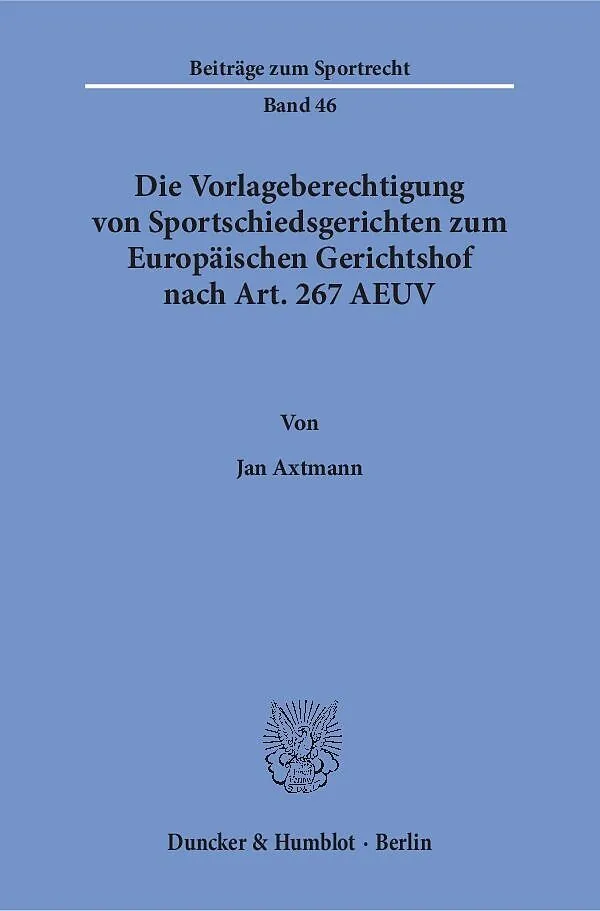 Der Abschluss einer Schiedsvereinbarung ist in den meisten Fällen Voraussetzung für die Teilnahme am sportlichen Wettkampf, ob diese nun in einer Satzung oder in einem zusätzlichen Vertrag enthalten ist. Daher werden Streitigkeiten im Sport grundsätzlich von S...
