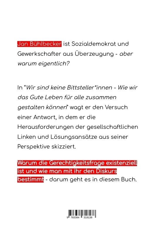 Jan Bühlbecker ist Sozialdemokrat und Gewerkschafter aus Überzeugung - aber warum eigentlich? In Wir sind keine Bittstellerinnen - Wie wir das Gute Leben für alle zusammen gestalten können wagt er den Versuch einer Antwort, in dem er die Herausforderungen der ...