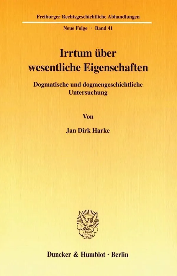 "Jan Dirk Harkes Untersuchung zum Irrtum über wesentliche Eigenschaften ist ein Nebenprodukt (Vorwort) seiner Habilitationsschrift 'Si error aliquis intervenit', die den Irrtum im klassischen römischen Vertragsrecht behandelt. Der hier zu besprechende Band beschäftigt sich im Anschluss daran mit der Dogmengeschichte des Eigenschaftsirrtums und seiner Behandlung in der Dogmatik des geltenden Zivilrechts. [...] Harke absolviert sein ehrgeiziges Programm zwar im Schnelldurchlauf, jedoch mit Bravour. Er liefert eine erfrischend kurze, pointierte und dennoch präzise Untersuchung zu einem Gegenstand, über den längst alles gesagt zu sein schien, und er fügt der irrtumsrechtlichen Diskussion wichtige Facetten hinzu." Martin Löhnig, in: Zeitschrift der Savigny-Stiftung für Rechtsgeschichte, Romanistische Abteilung, 124/2007