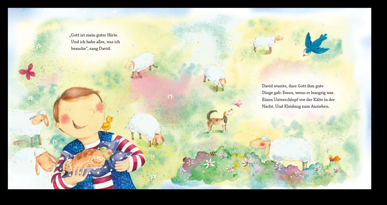 In diesem liebevoll illustrierten Bilderbuch wird Psalm 23 nacherzählt. Der kleine Schafhirte David erlebt: Gott passt auf ihn auf und gibt ihm alles, was er braucht. Und das, was David erlebt, können wir alle erleben: Gott ist unser guter Hirte. Ein wunderbar...