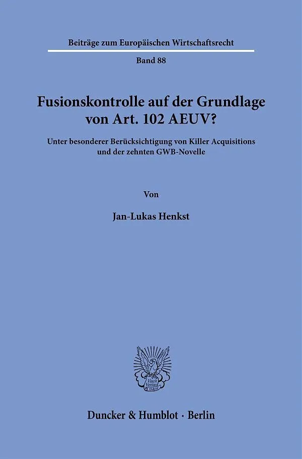 Die Arbeit befasst sich mit bestehenden Regelungslücken innerhalb der europäischen und deutschen Fusionskontrolle, wozu etwa die Problematiken von Killer Acquisitions oder das Anwerben von Gründern und Mitarbeitern zählen. Zur Schließung wird die Anwendung von...