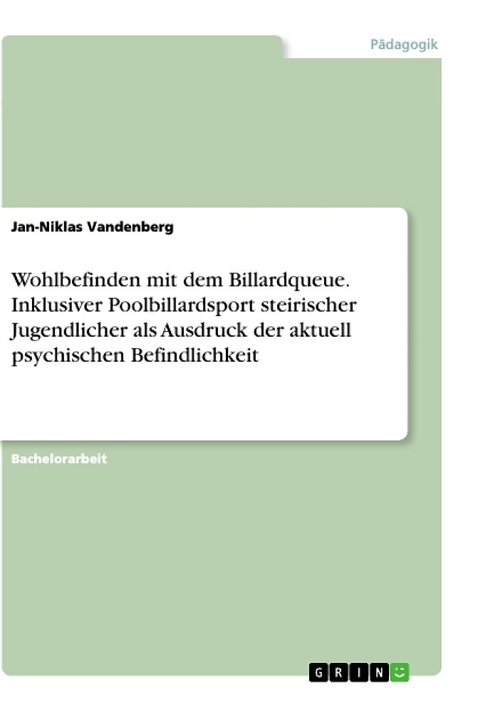 Wohlbefinden mit dem Billardqueue. Inklusiver Poolbillardsport steirischer Jugendlicher als Ausdruck der aktuell psychischen Befindlichkeit