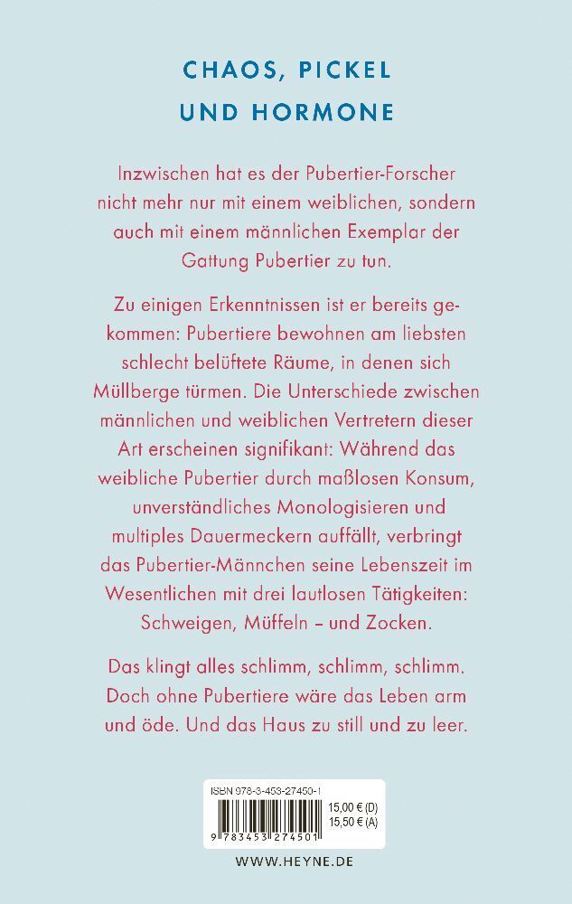 Chaos, Pickel und Hormone - Wie der Wahnsinn in der Familie weitergeht Inzwischen hat es der Pubertier-Forscher nicht mehr nur mit einem weiblichen, sondern auch mit einem männlichen Exemplar der Gattung Pubertier zu tun. Zu einigen Einsichten ist er bereits g...