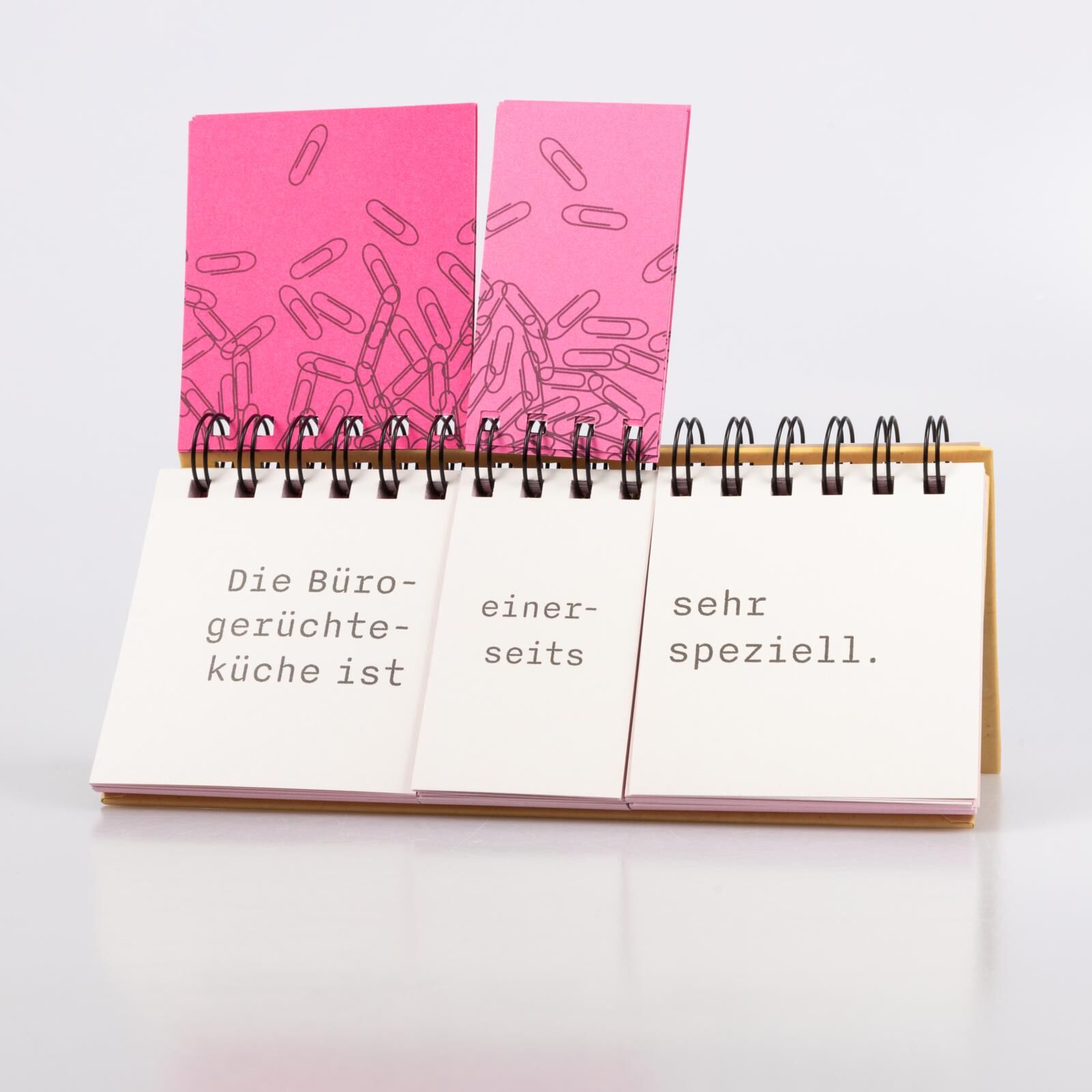 Das ideale Gadget für Büro und Schreibtisch: Einfach umblättern und loslachen! Jetzt ist Schluss mit dem grauen Büroalltag! Mit diesem Sprüche-Generator wird der Arbeitsplatz zur Gute-Laune-Zone. Einfach den Stress hinter sich lassen und Platz für Spaß machen...