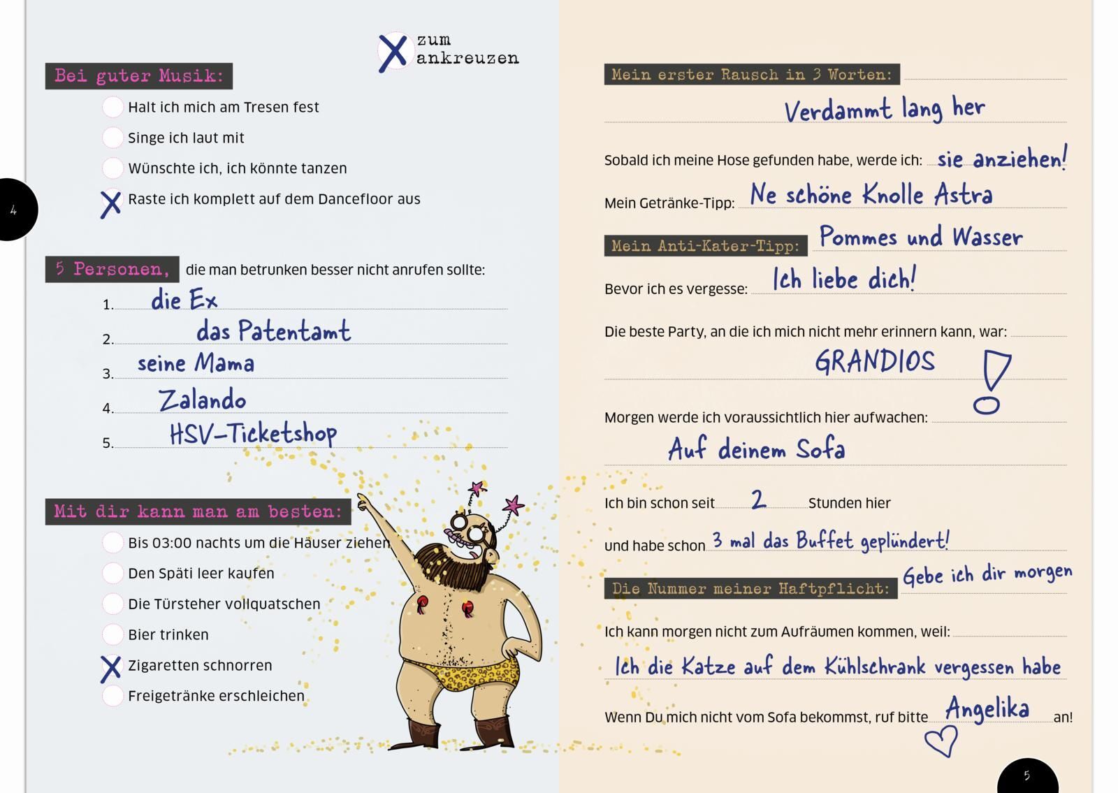 Unvergessliche Partymomente festhalten Auf Partys entstehen die besten Freundschaften und genialsten Ideen, die am nächsten Tag oft vergessen sind. Dieses Eintragbuch für Partygäste verhindert den Filmriss und entlockt ihnen die pikantesten Details. Endlich k...
