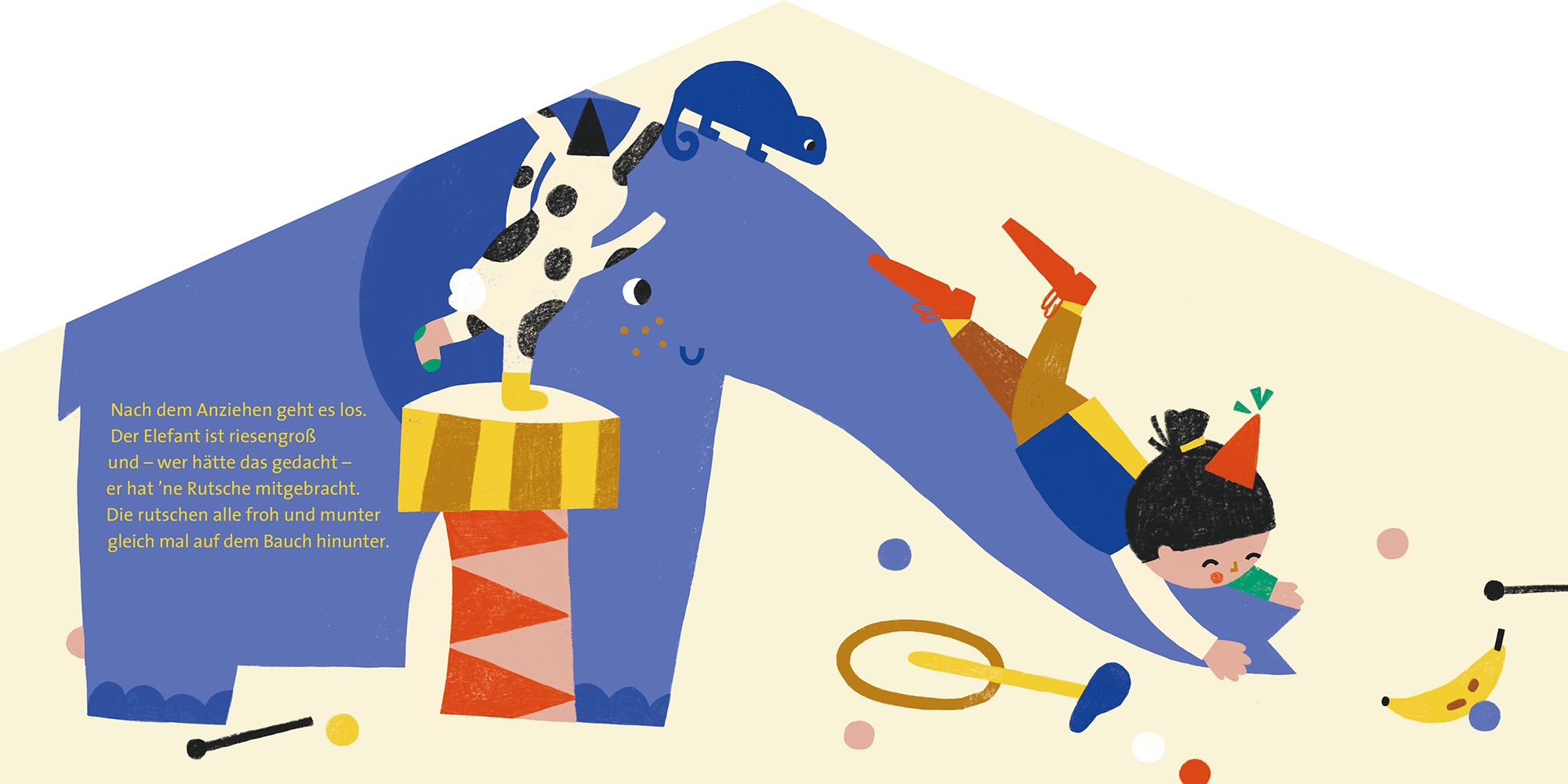 Eine Zirkustruppe irrt sich in der Tür und steht eines Morgens plötzlich mitten in Minas Kinderzimmer! Klar, dass sie da gleich putzmunter ist und aus dem Bett springt. Der Elefant hat eine Rutsche mitgebracht, der Affe zeigt ihr, wie man jongliert, sie übt Ak...