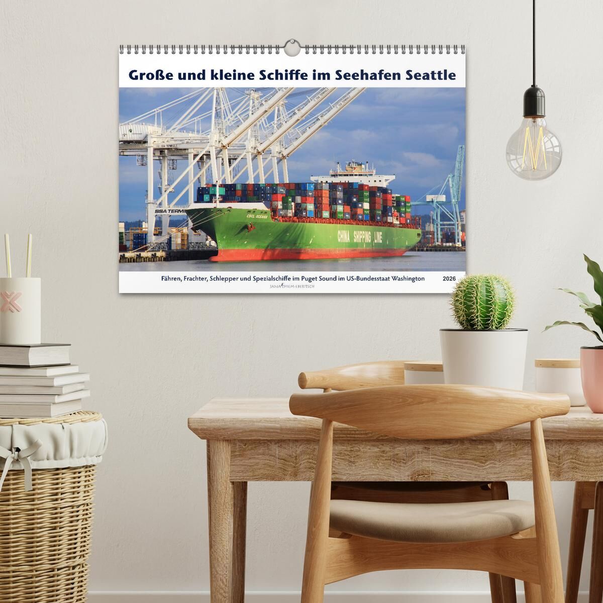 Große und kleine Schiffe im Seehafen Seattle (Wandkalender 2026 DIN A3 quer), CALVENDO Monatskalender