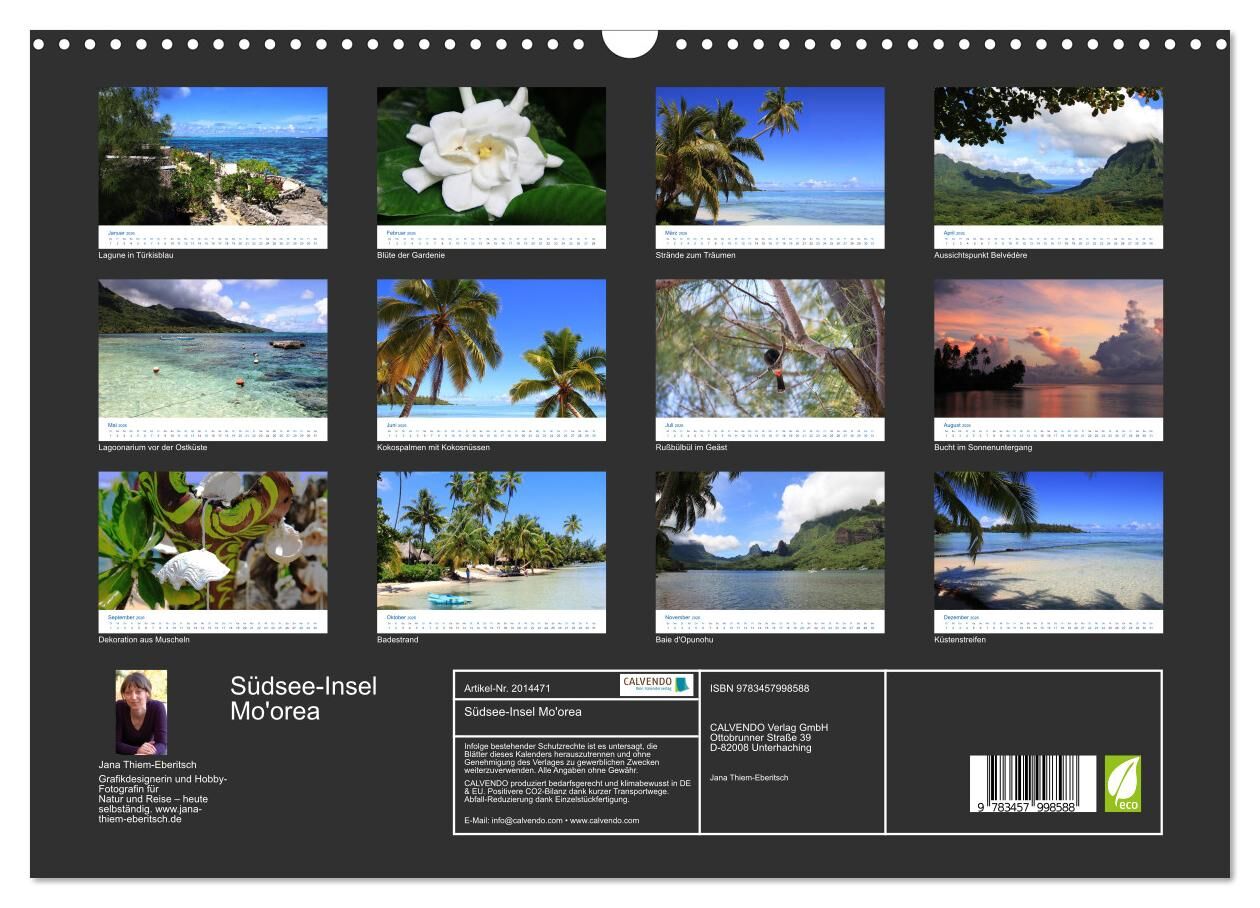 Südsee-Insel Mo'orea (Wandkalender 2026 DIN A3 quer), CALVENDO Monatskalender